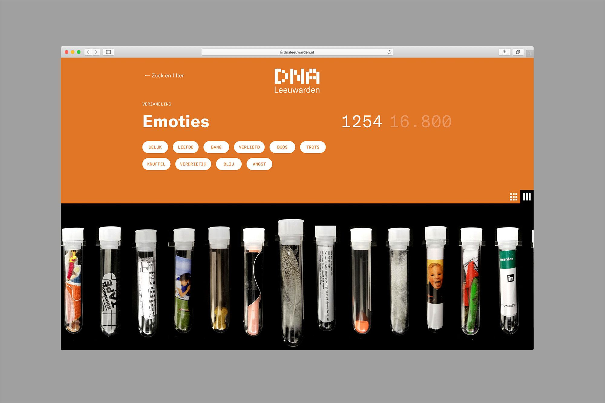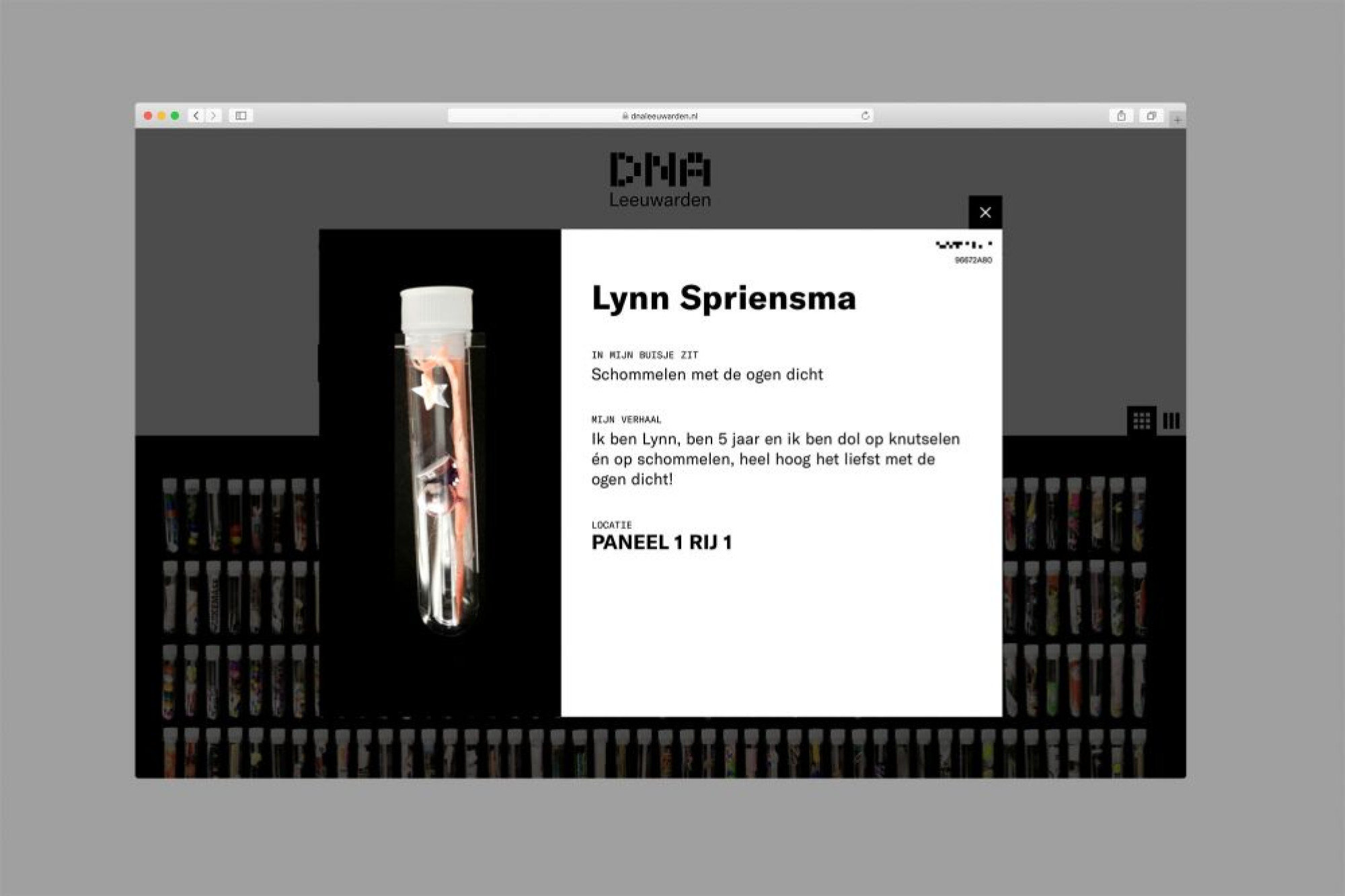 Het verhaal achter ieder buisje kun je vinden op dnaleeuwarden.nl. De buisjes kun je filteren op verzameling (thema's zoals geschiedenis, familie, emoties en taal). Onderdeel van het kunstwerk is led-licht dat correspondeert met deze verzamelingen. Dit geeft een indicatie waar buisjes met een bepaald thema zich bevinden in het kunstwerk en geeft aan hoeveel verhalen er zijn met dat thema.